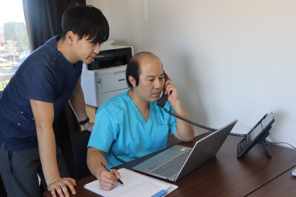 事業所内の看護師にすぐに連携します。